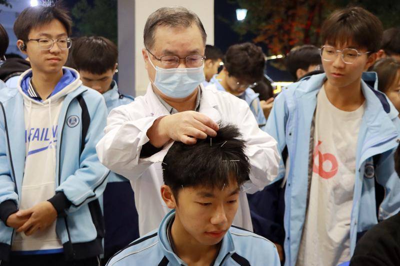 活动现场人头攒动,其中中医特色治疗体验区尤为引人注目,成为师生争相“打卡”的热门区域。柳江区中医医院的医护团队现场提供针灸、扶阳罐、耳穴压豆、砭石温灸等特色理疗服务,精湛的手法与细致的讲解吸引众人驻足。“医生的推拿非常专业,有效缓解我因长期久坐引发的肩颈酸痛,这次体验让我真切感受到中医的博大精深,也更想深入了解它。”刚体验完推拿的学生谢欣芮兴奋地分享。医护人员还针对青少年常见的用眼过度、颈椎疲劳等问题,现场传授穴位按摩技巧,让大家在互动中领略中医养生的智慧。