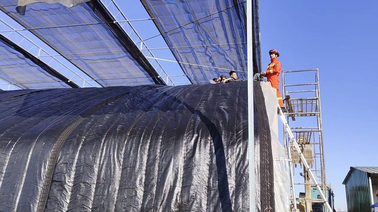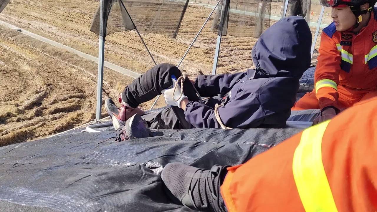 途中经电话询问,现场事故发生为农场主在铺设大棚保温膜时,滚轮突发掉落不仅将其腿部压住,还导致左脚脚踝意外脱落,男子被困大棚上方无法移动,消防救援到达现场后立即进行勘察,被困男子身处大棚高处,因左脚脚踝严重受伤失去行动能力,消防救援人员根据现场情况立即实施救援,首先架设9米拉梯到达男子所在位置,再将其抬至担架并做好保护固定避免转移过程中造成二次伤害随后与其余救援人员进行配合对受伤人员进行转移,经过一番紧张的救援,成功将男子营救至安全区域,随后交由现场120医护人员送往医院进行救治。