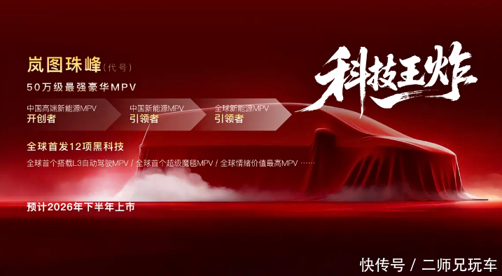 代号“珠峰”的全新MPV则属于“科技王炸”,将全球首发12项黑科技,成为全球首个搭载L3自动驾驶的MPV以及首个拥有超级魔毯的MPV车型,是岚图在MPV领域的科技旗舰。