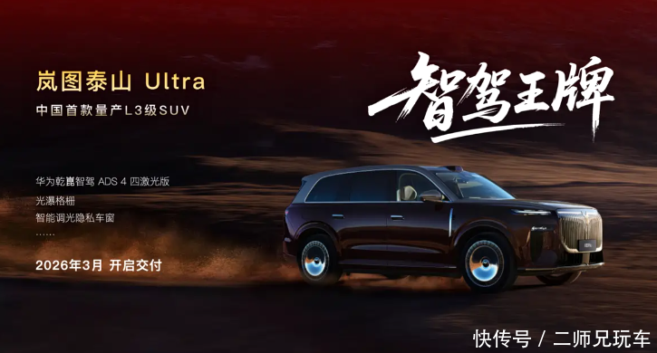 根据官方消息,岚图宣布将在2026年推出四款全新车型,且全部标配L3级智能驾驶硬件。
