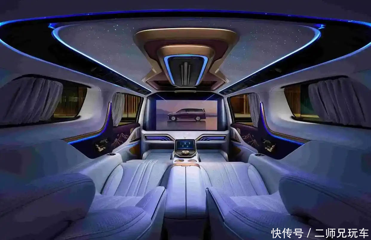 除此之外,岚图品牌还推出了岚图梦想家山河这种“立牌子”的四座车型,售价高达70.99万元,配备全隔断智能云幕、50英寸IMAX巨幕、山河云榻、天然影木内饰等,拉高岚图的高端属性。